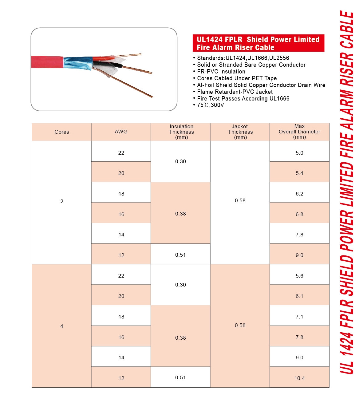UL 1424 FPLR Shield Power Limited Fire Alarm Riser Cable